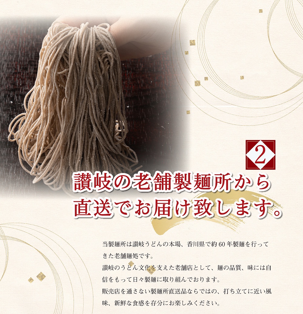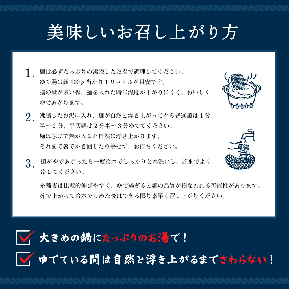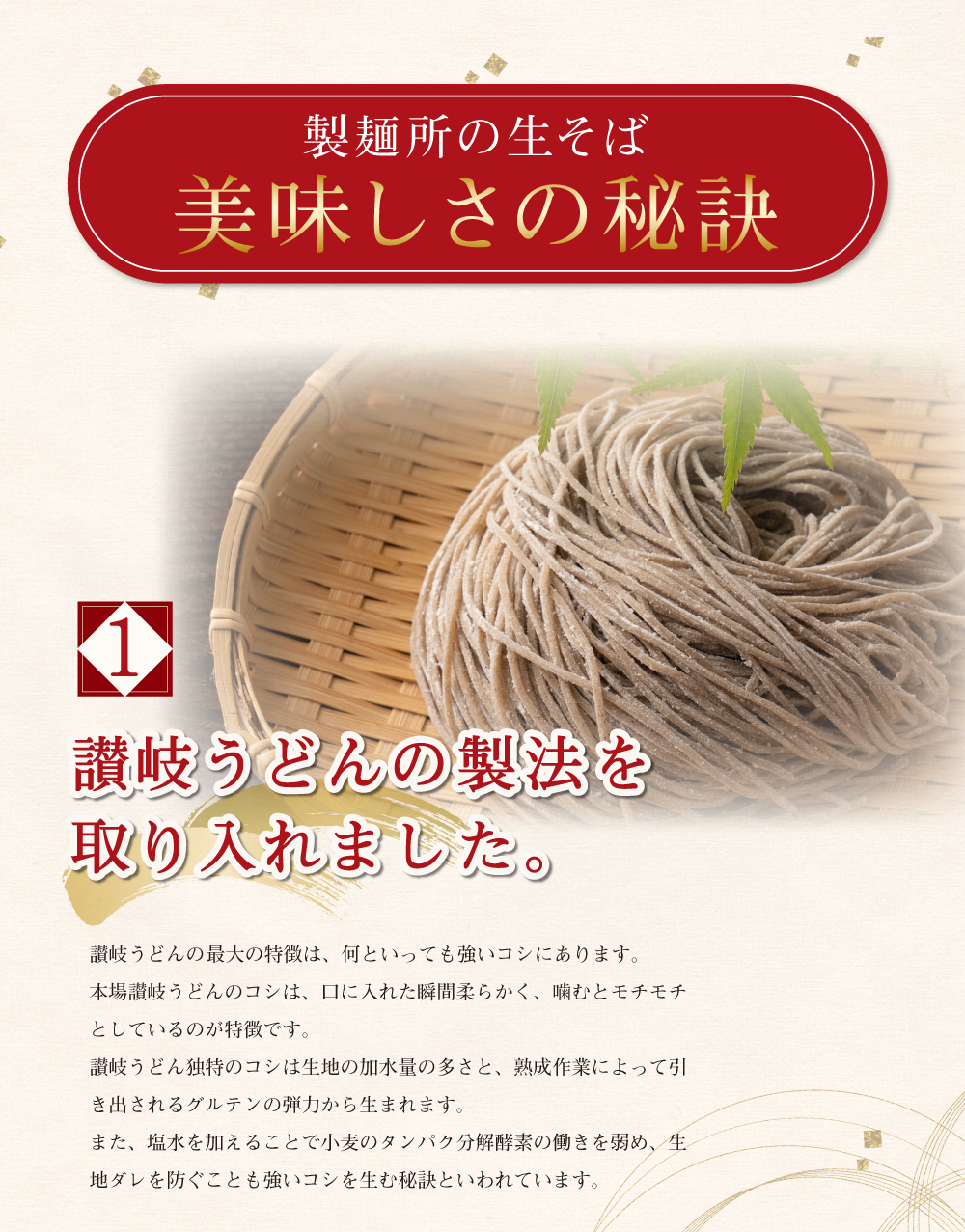 | 【麺】株式会社さぬき麺心 香川県坂出市林田町4285-323 ※本品製造工場ではそば粉を含む製品を製造しています。 【そばつゆ】鎌田醤油株式会社 香川県坂出市本町1-6-35 | |