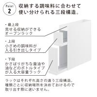 油跳ねで調味料が汚れるのを防ぐ大容量の隠せる2段ラック。