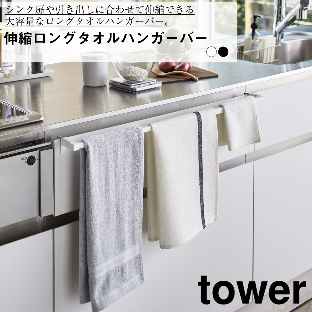 伸縮ロングタオルハンガーバー タワー 山崎実業 おしゃれ シンプル 高見え 便利 キッチン 収納 アタッチメント 拡張 ハンド お手拭き