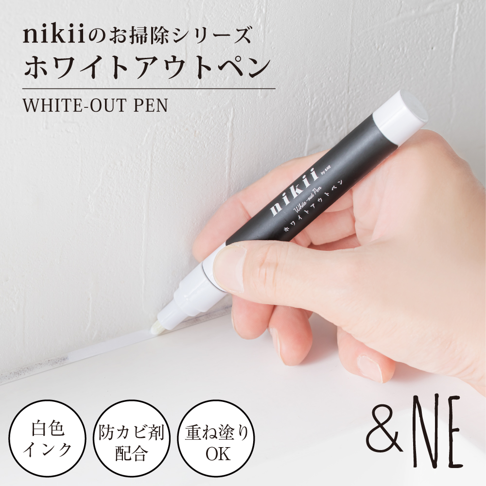 ホワイトアウトペン nikii 日本製 カビ隠し 黒ズミ 隠す パッキン タイル 目地 キッチン お風呂 洗面台 トイレ 冷蔵庫 防カビ剤 重ね塗り シンク 掃除 修正