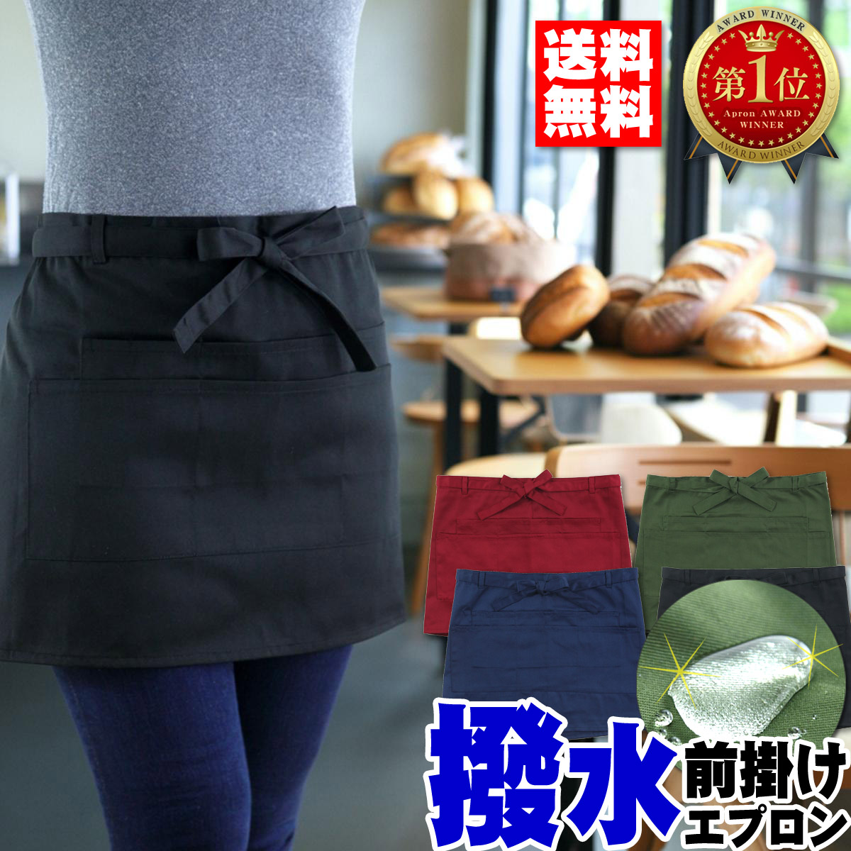 ショート エプロン おしゃれ 黒 前掛け 無地 赤 紺 保育士 メンズ カフェ お尻が隠れる ユニフォーム/倉庫