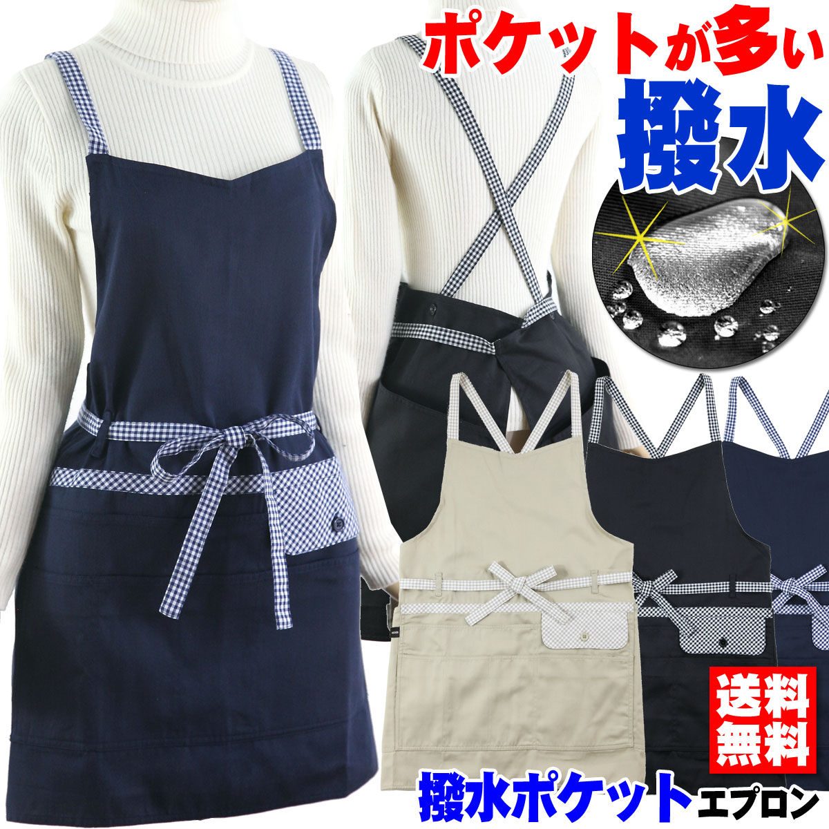 エプロン 撥水加工 大きいサイズのポケット ポケットたくさん 無地 おしゃれ クロス キャンプ 業務用 飲食店 カフェ/倉庫