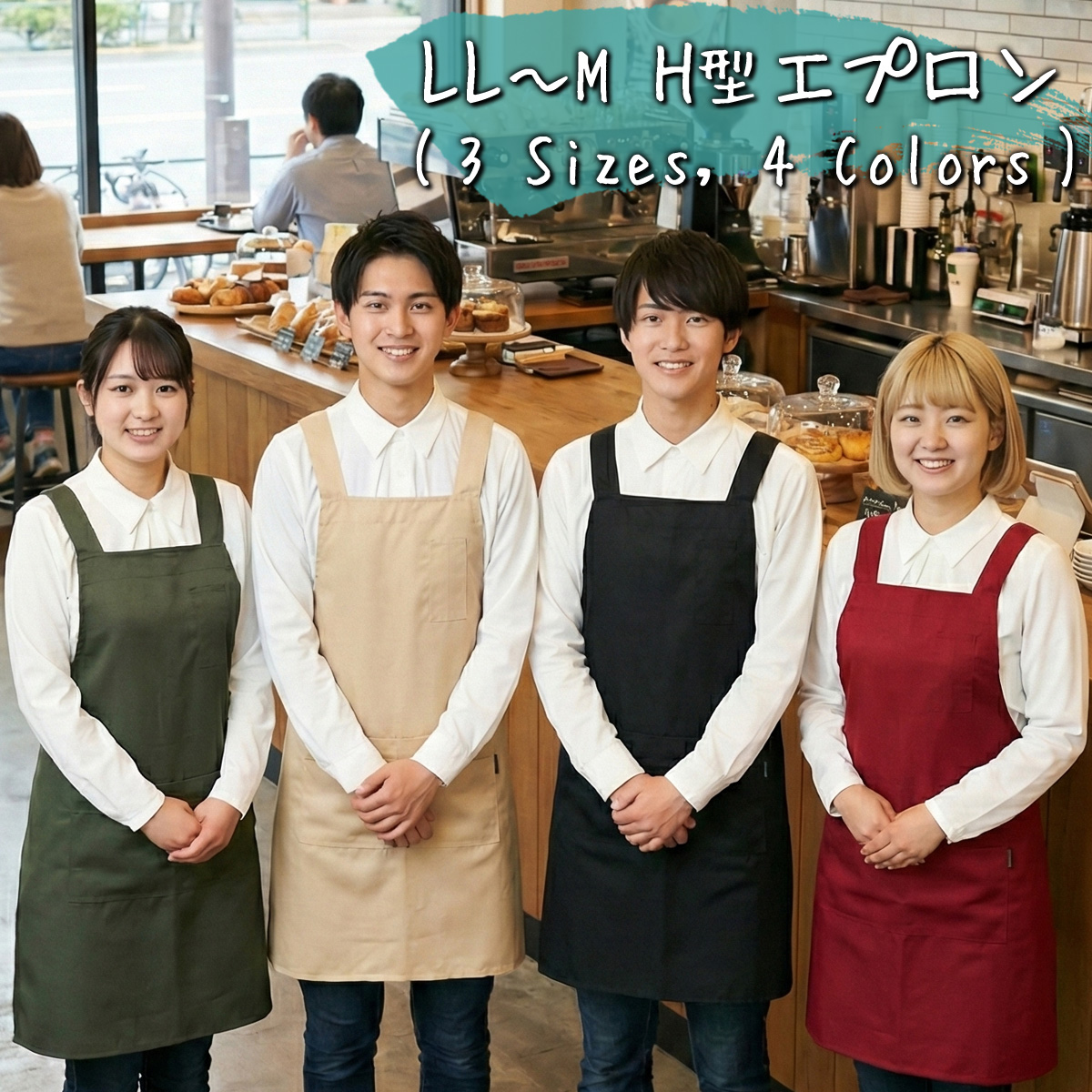 エプロン H型 おしゃれ 大きいサイズ 保育士 エプロン 介護用エ ノーアイロン LL M L シンプル かぶり かぶるだけ 無地 肩紐落ちない 黒 紺 カーキ/倉庫
