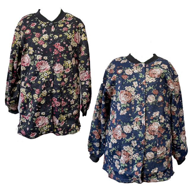 クラシカルなローズ柄が素敵なスモック。裏起毛素材で、温かく着て頂けます。脱ぎきもしやすくお家の中での羽織りにも便利なスモックタイプです。■サイズ:フリーサイズ 着丈約75cm■素材:ポリエステル100%■原産国:中国■両脇ポケット付き