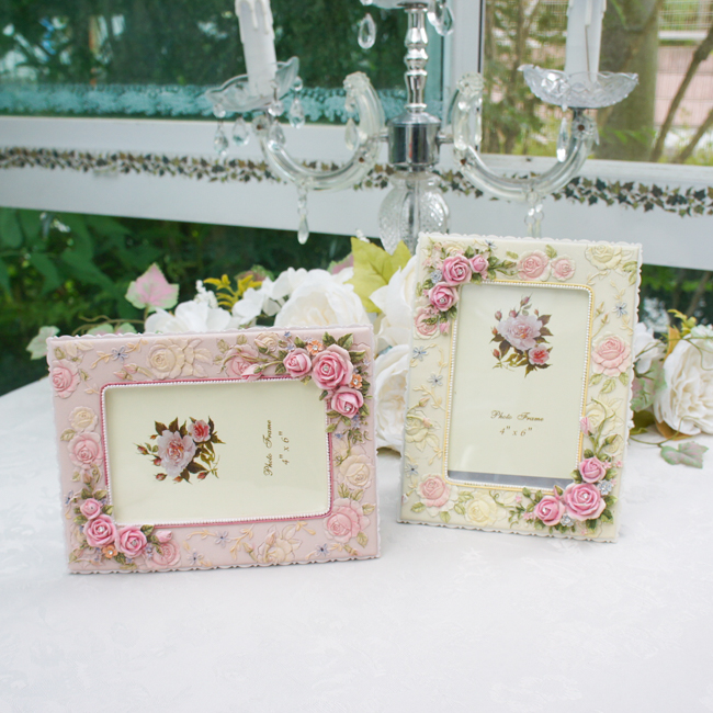 フォトフレーム 写真立て 縦横両用 ローズレリーフ ピンク ベージュ かわいい 薔薇 ハガキサイズ L判