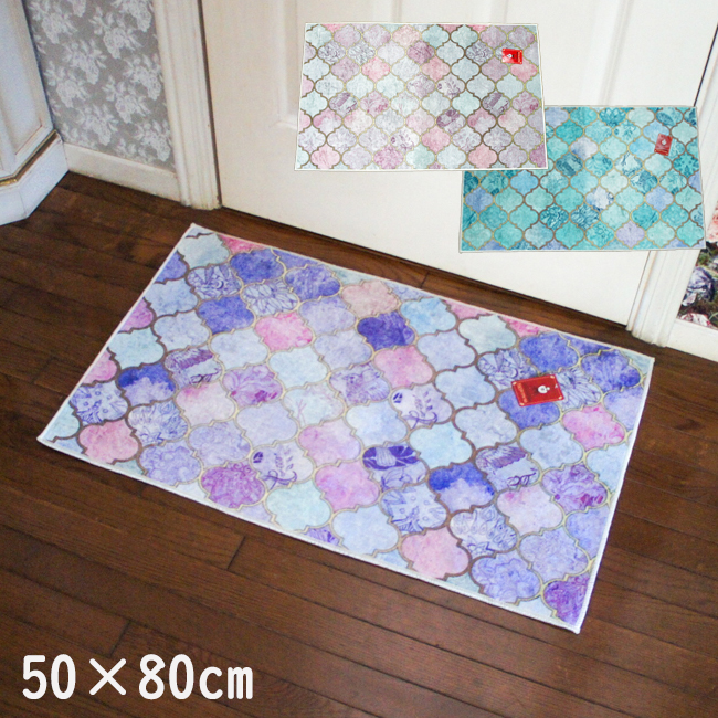 玄関マット 50×80cm 屋内用 モロッカン柄 プリント ピンク パープル グリーン