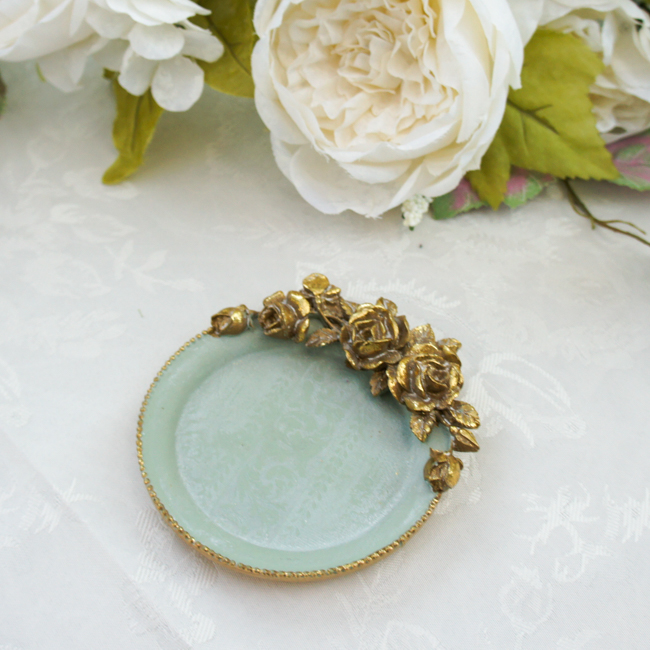 アンティークローズ ラウンド トレイ ゴールド グリーン 薔薇モチーフ 小物置き 小物 小物トレー アンティーク調