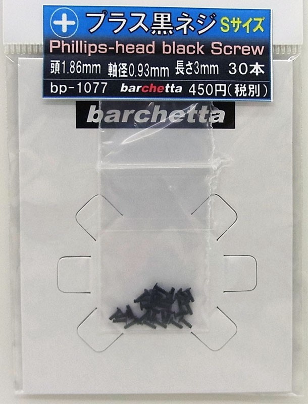 プラス黒皿ネジ Sサイズ 頭1.86mm 軸径0.93 長さ3mm 30本入り