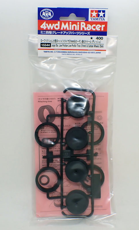 ミニ四駆 ローフリクション大径ローハイトタイヤ (31mm) &カーボンホイール (ディッシュ) タミヤ グレードアップパーツ ITEM15544