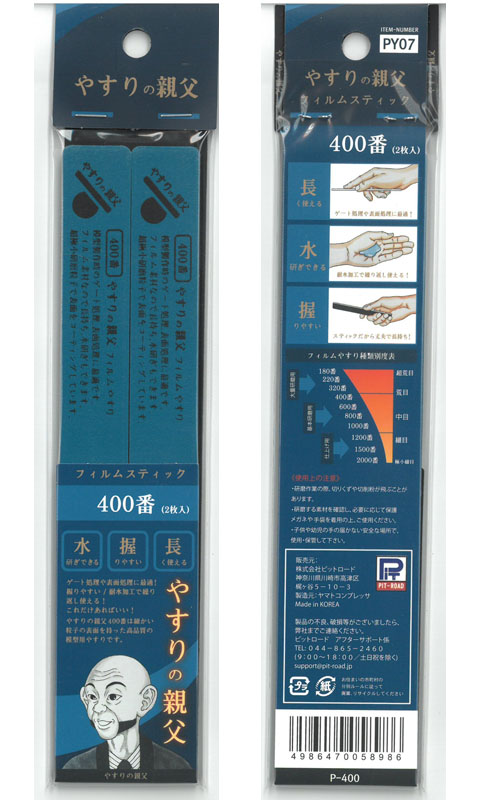 フィルムスティックやすり 400番 両面仕様:2本入り やすりの親父 PY07