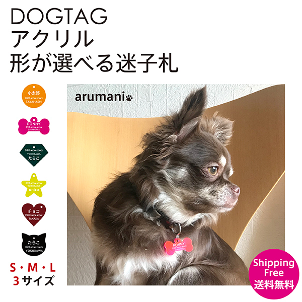 ★超軽量★犬用 迷子札 名札 国産アクリル使用 ペット 名入れ 形が選べる