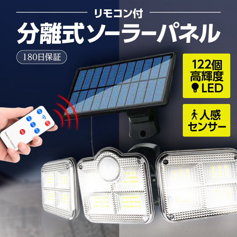 ソーラーパネルと本体がセパレートタイプの人感センサーライトです。