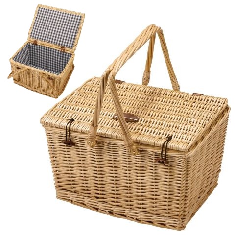 かごバスケット ピクニックバスケット 蓋付き 北欧 かごバッグ 柳 スクエア 四角 おしゃれ お花見 UT-1029 キャプテンスタッグ 同梱不可