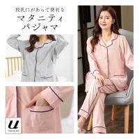 マタニティ パジャマ 妊婦服 授乳服 ルームウエア 上質 コットン シンプル 隠し授乳口 調整可能ベルト 長袖 前開き 柔らかい 快適 送料無料