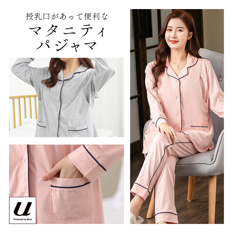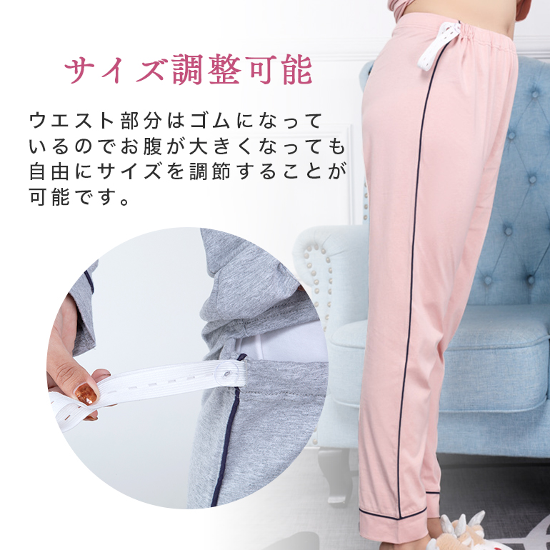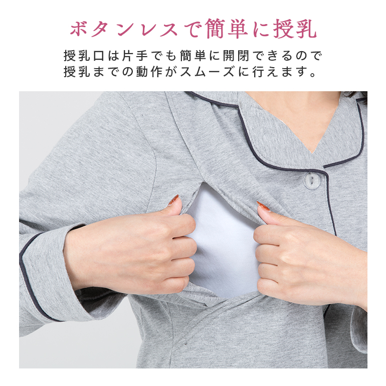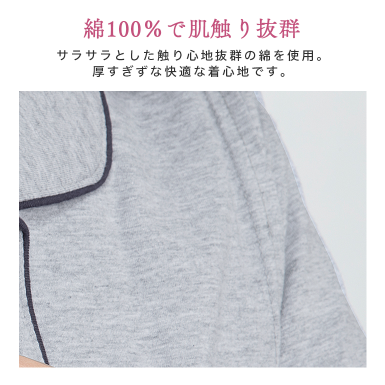 ・赤ちゃんに直接触れる生地だから肌に優しい綿100%採用のマタニティパジャマです。