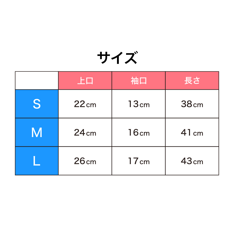 S:上口22cm 袖口13cm 長さ38cm