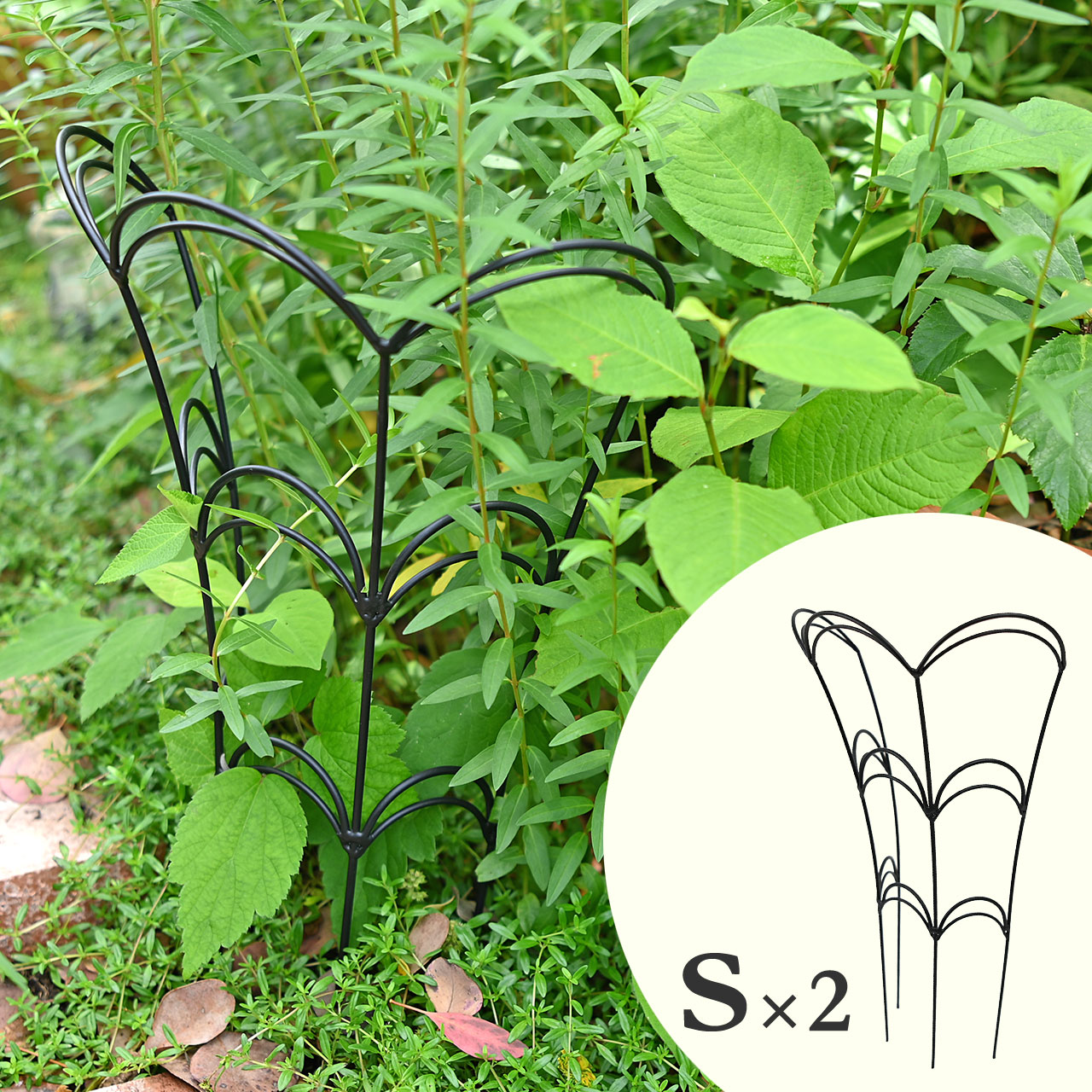 フラワーガード アイアン製 ブラック Sサイズ 2枚 支柱 花支え ミニトレリス 柵 サポート 宿根草 シンプル