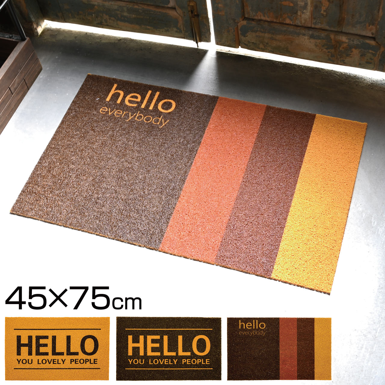 オレンジがかった黄色とHELLOの文字で元気にお客様をお出迎えしてくれる玄関マットです。