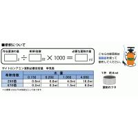 散布量 | 希釈液を 150〜200ml /平米 1平米あたり原液0.2〜0.8ml分を使用します。 |