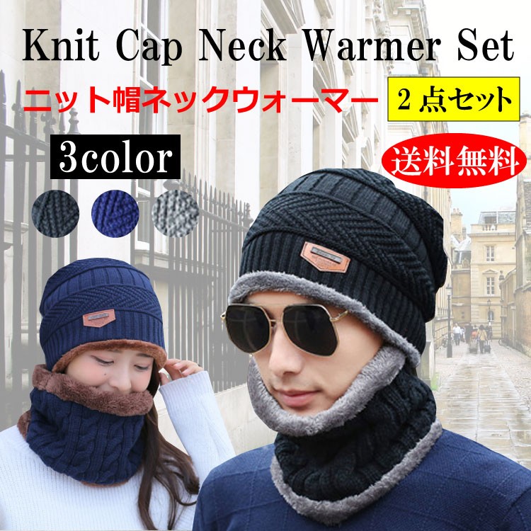 ネックウォーマー ニット帽 2点セット メンズ レディース 帽子 ニット 冬 裏起毛 男女兼用 ニット帽子 ニットキャップ 送料無料 冬物