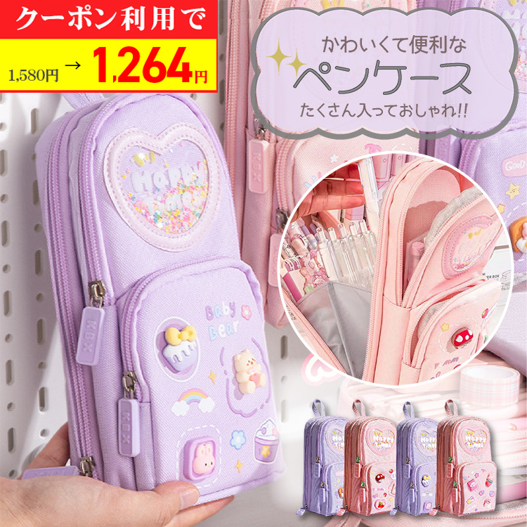 【ポップなデザインが可愛い♪多機能 ペンケース】可愛くて文房具が入るのが便利な多機能なペンケースです