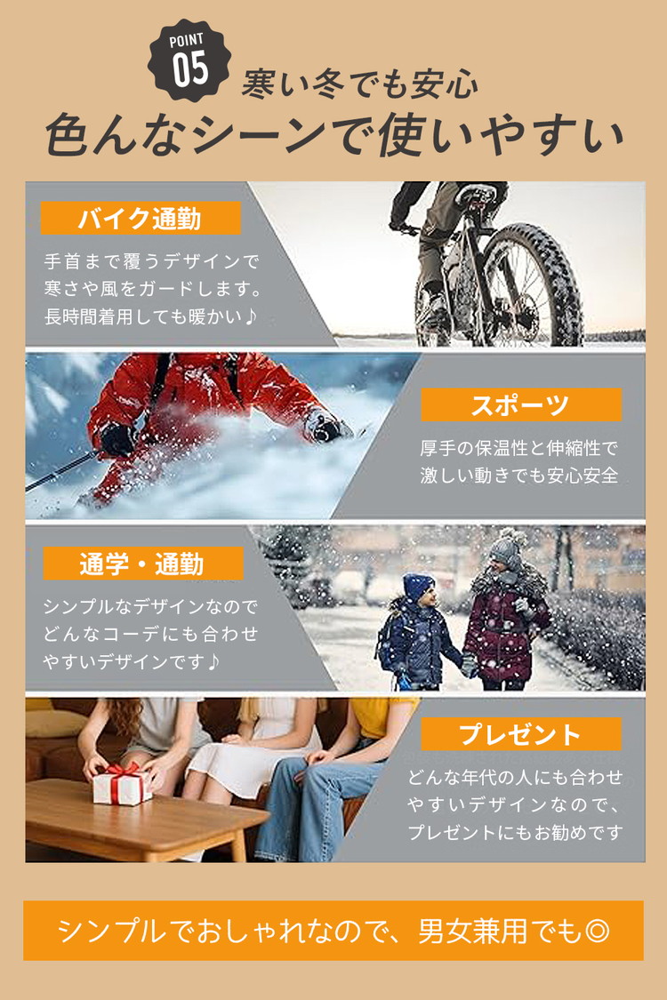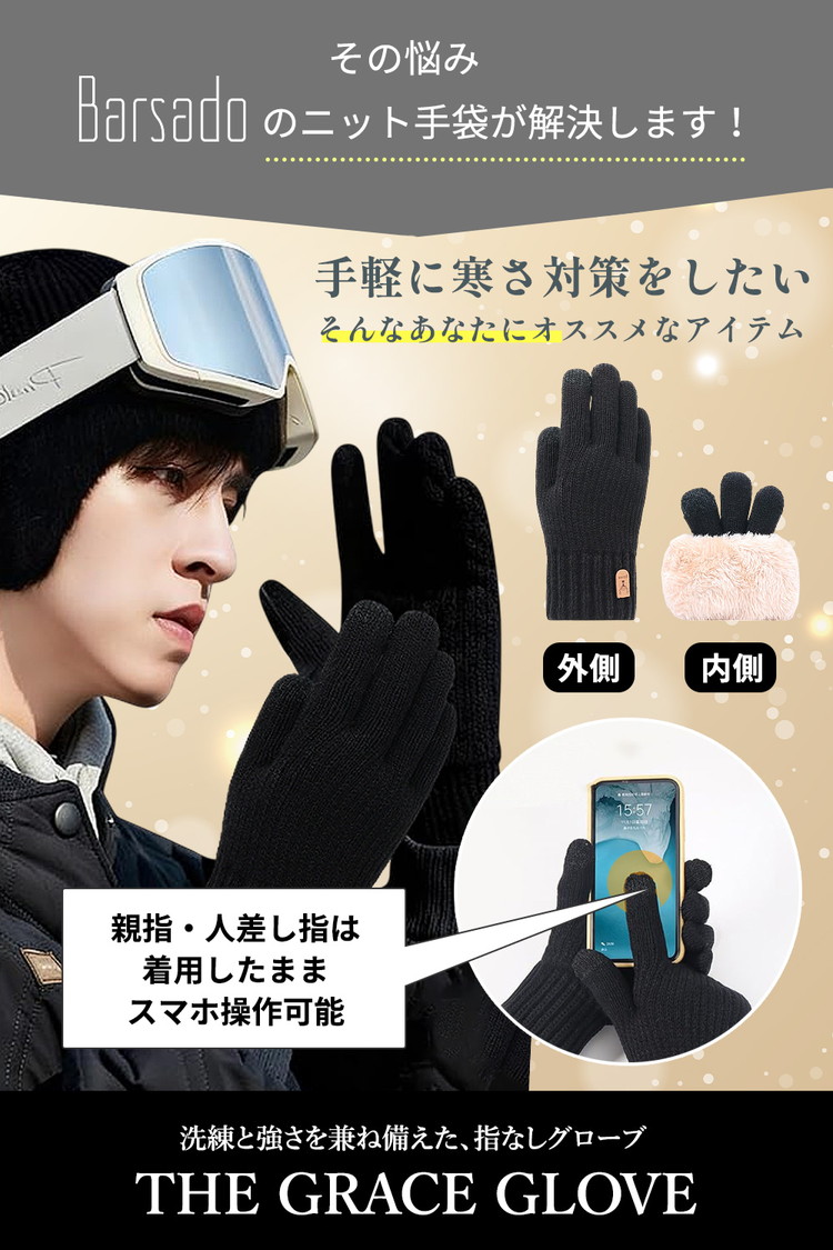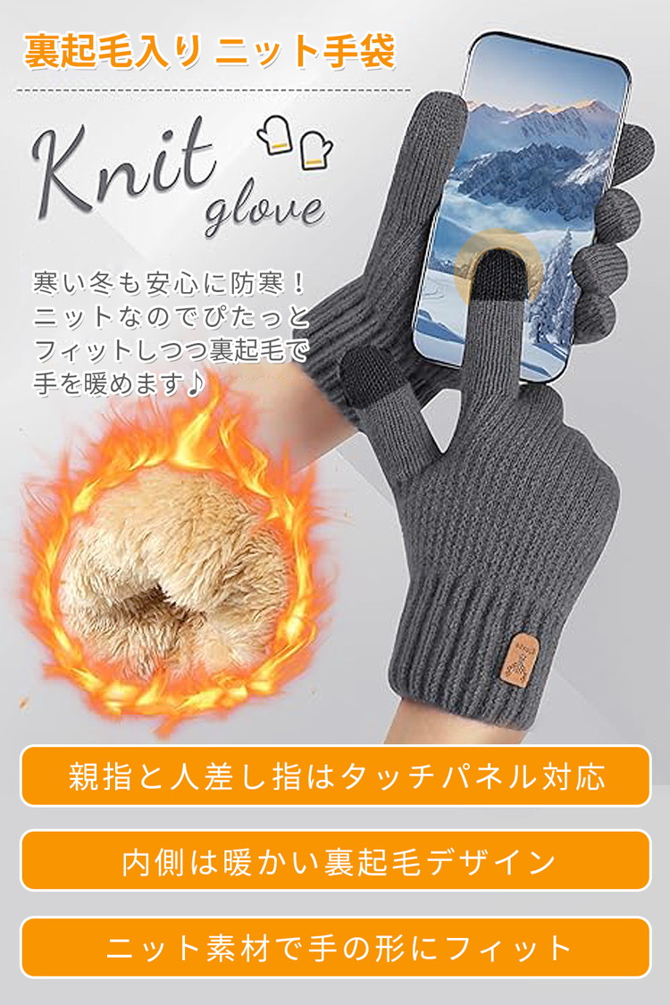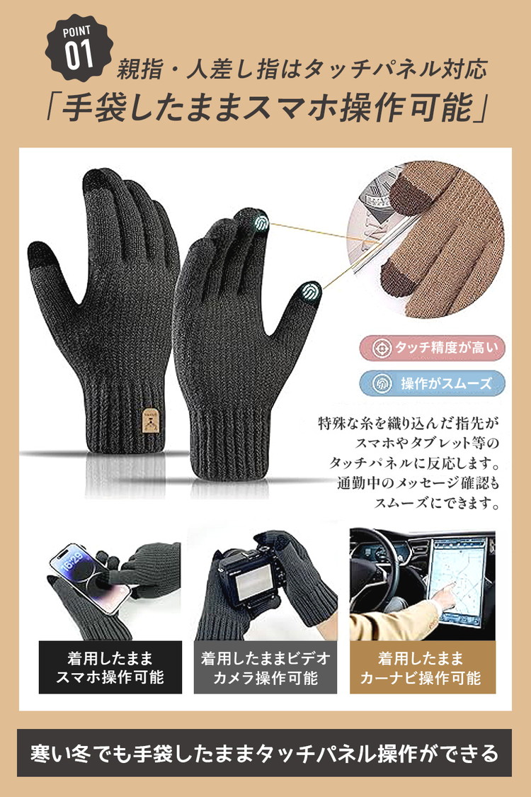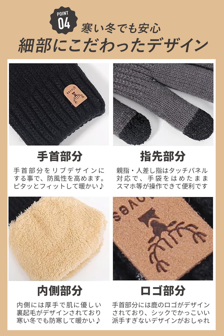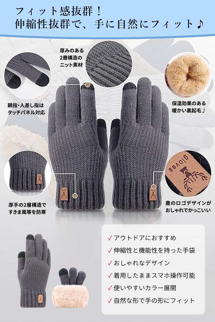 【ポイント3 伸縮性が良い素材使用】柔らかく伸縮性のあるニット素材を使用しているので、フィット感が良く、軽くて暖かいです