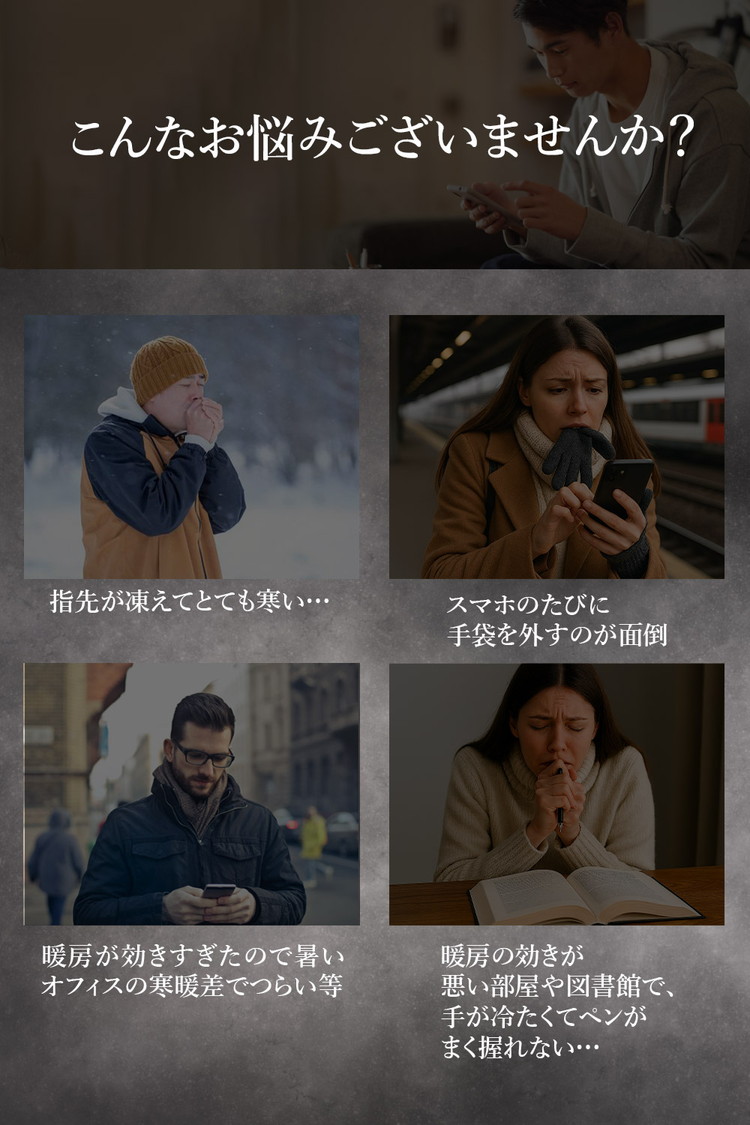 【ポイント1 着用したままスマホ操作できる】親指と人差し指はタッチパネル対応で、手袋を着用したままスマホ操作ができます