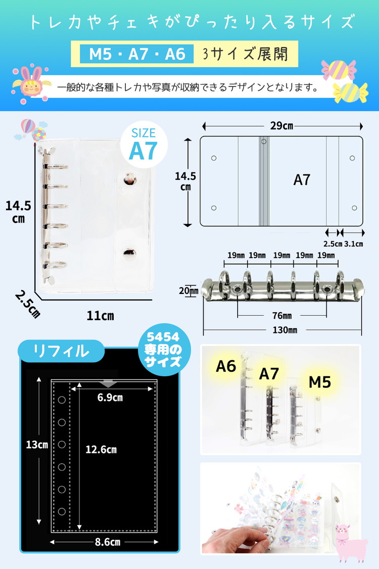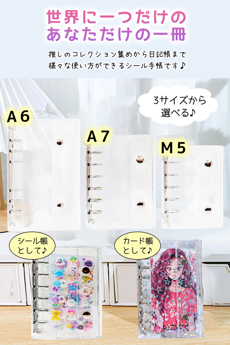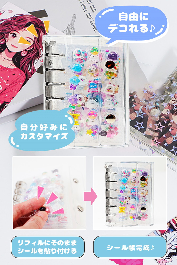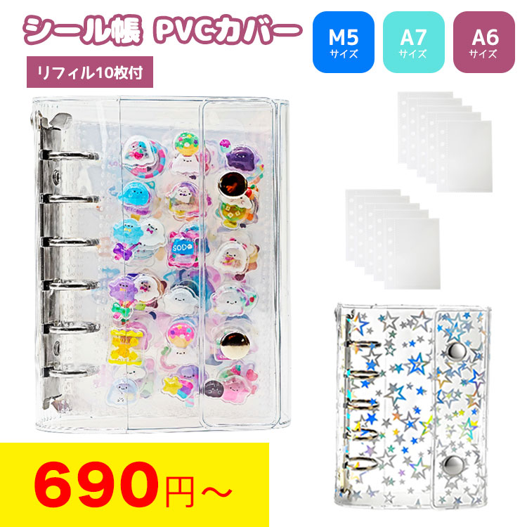 シール帳 バインダー 透明 星柄 シールバインダー 台紙 6穴 女の子 男の子 リフィル10枚付 M5 A7 A6