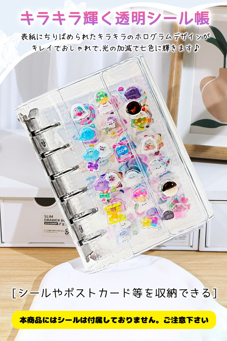 【透明カラーや星柄が可愛い♪ シールバインダー リフィル10枚付】ホログラム風の星柄を散りばめた透明デザインが可愛いシールバインダーです