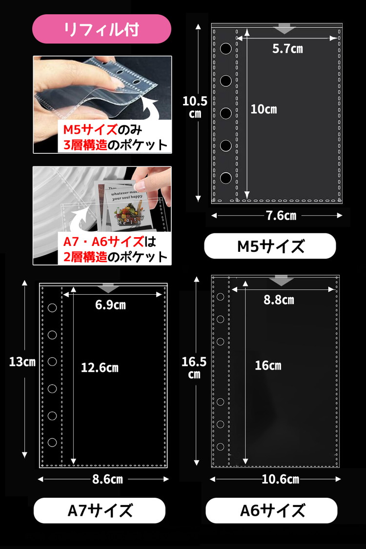 ※リフィルのポケットは2層構造です※上記のサイズは多少の誤差がございますので、ご了承下さい