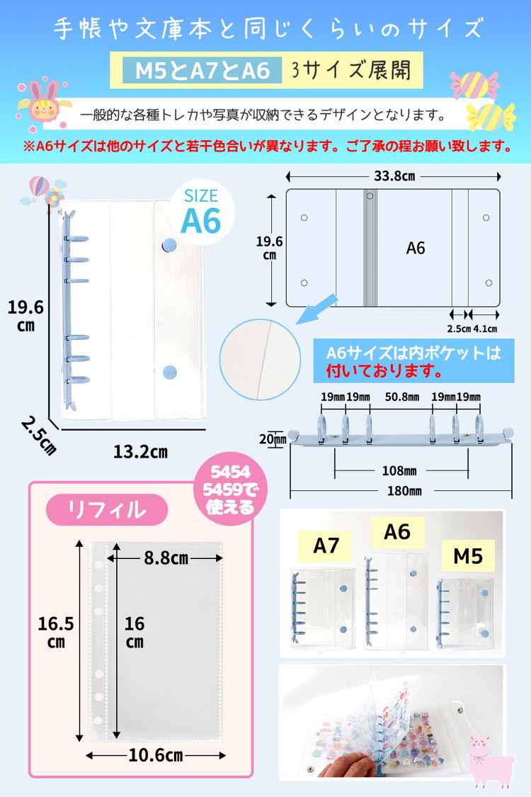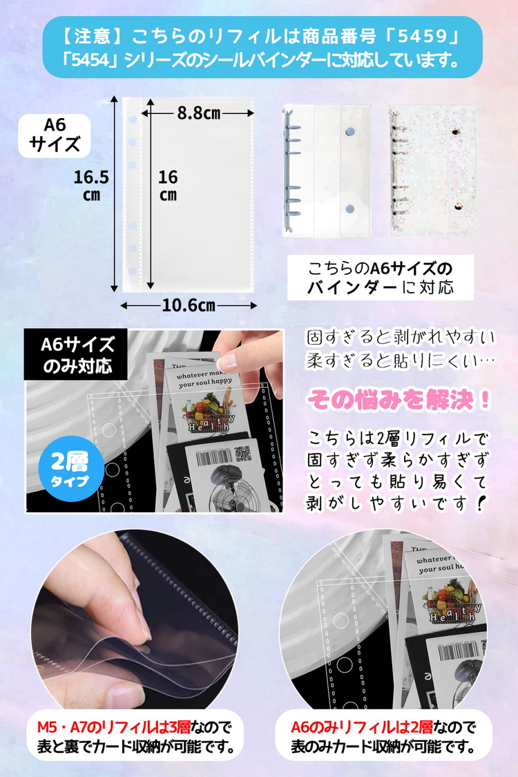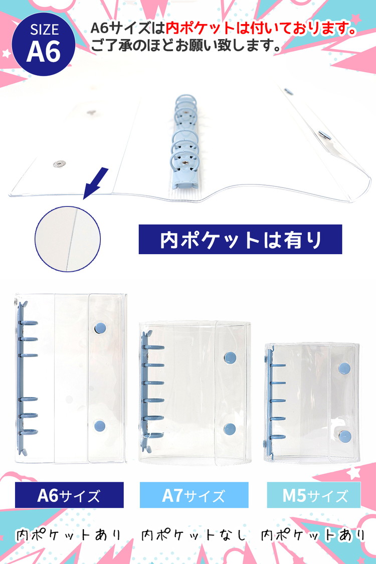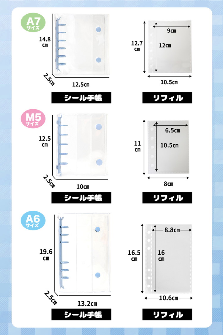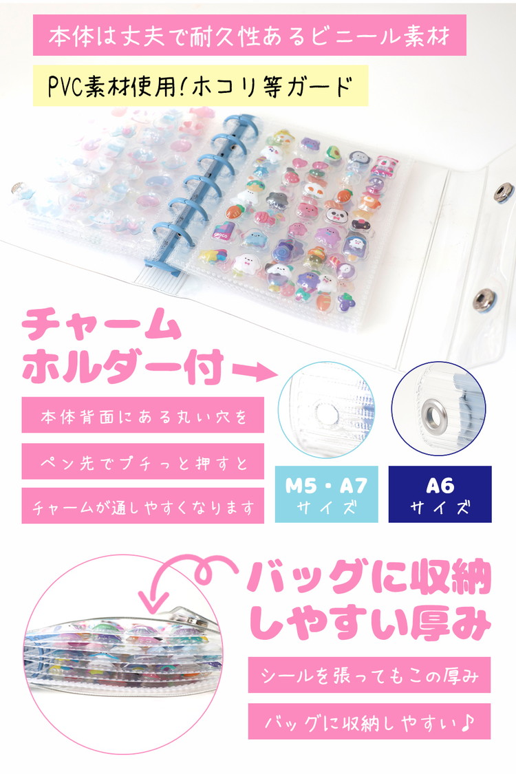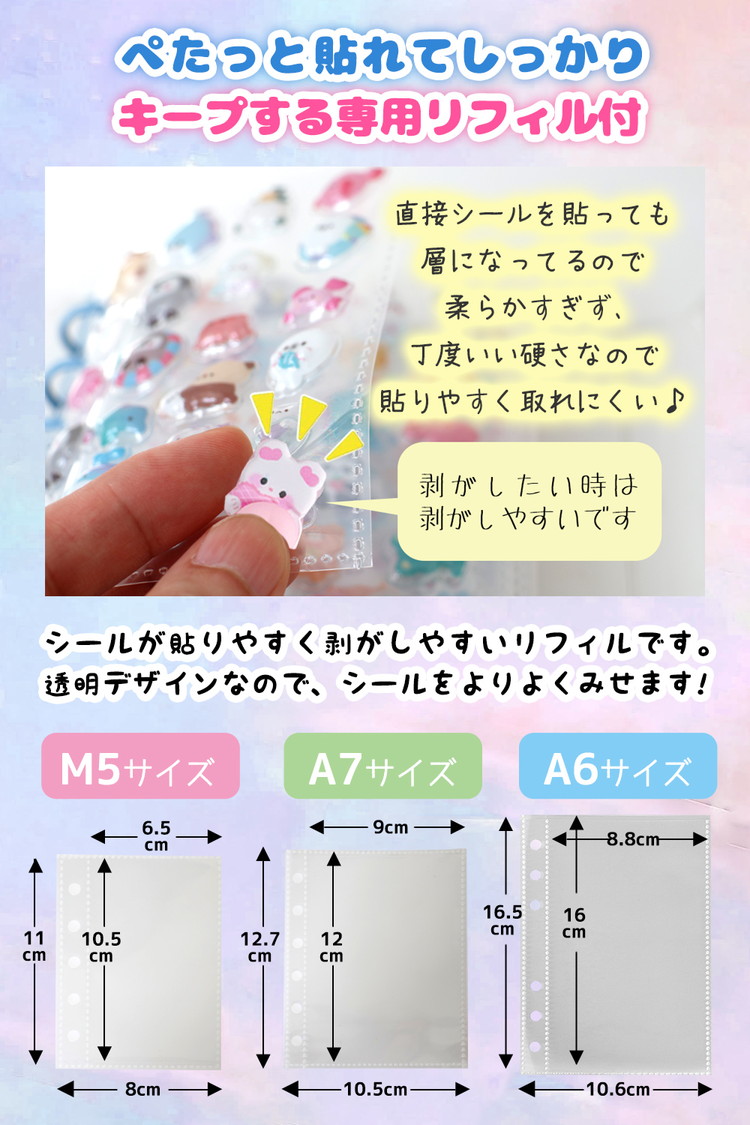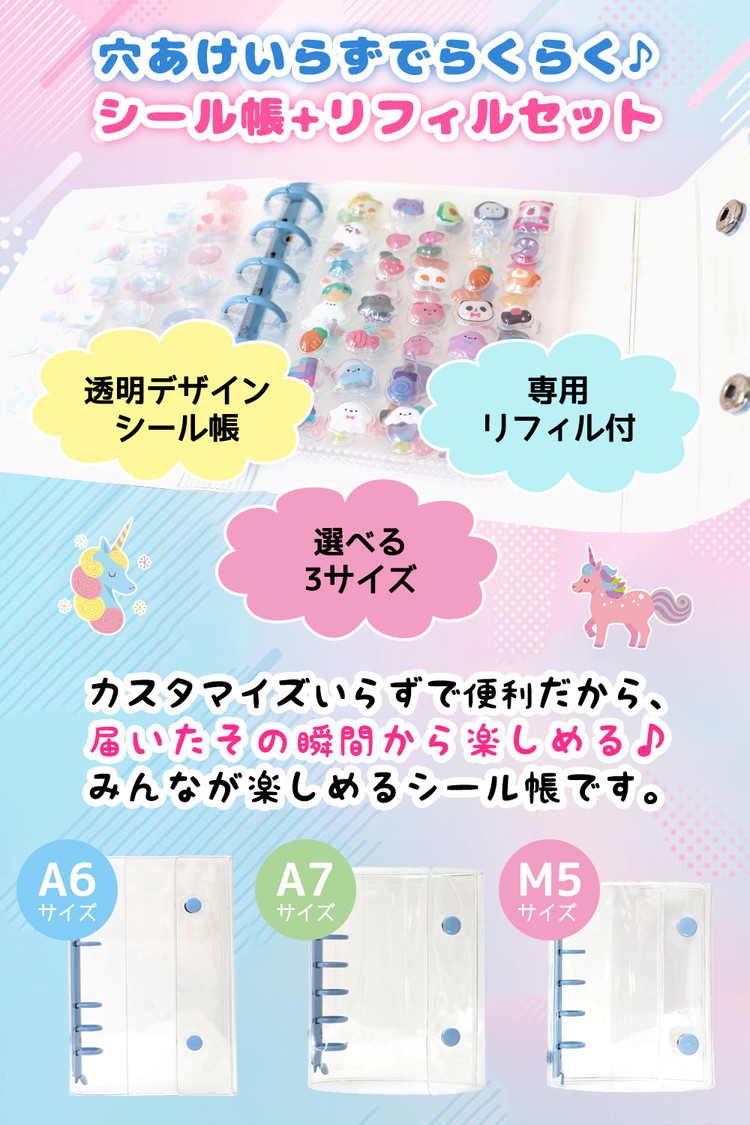 シール帳 バインダー 透明 シールバインダー 台紙 6穴 女の子 男の子 リフィル10枚付 M5 A7