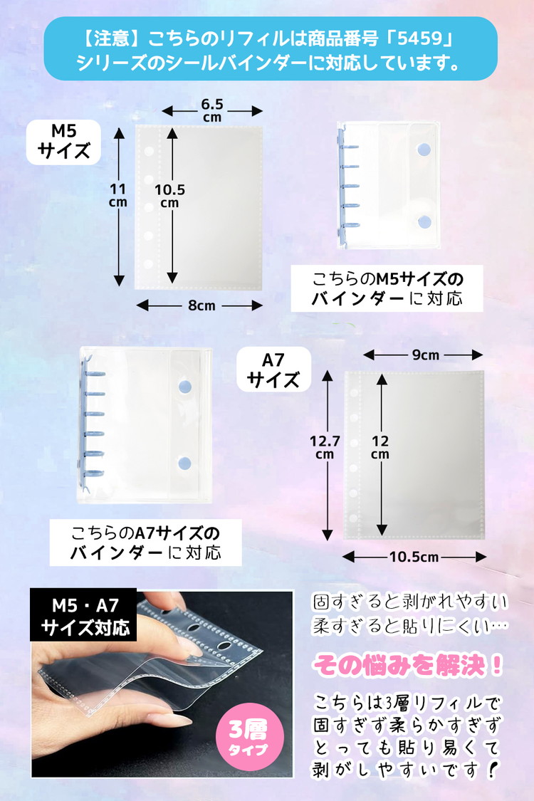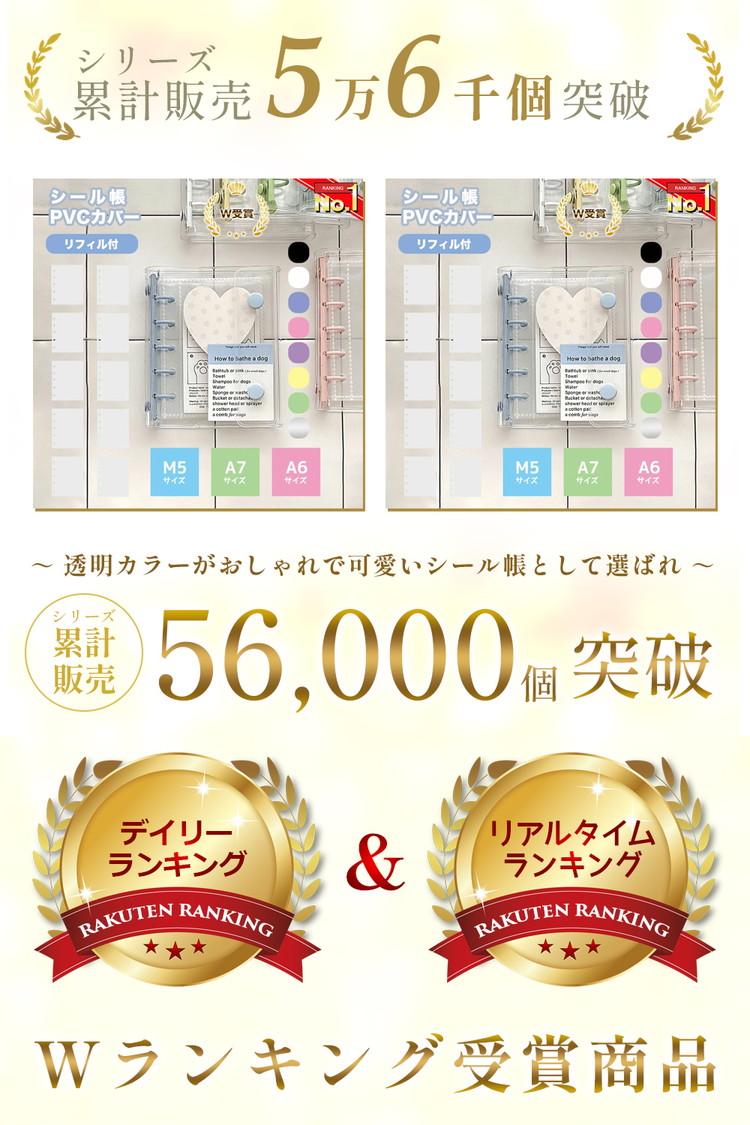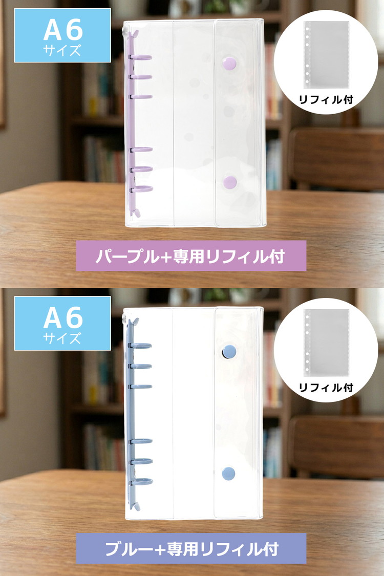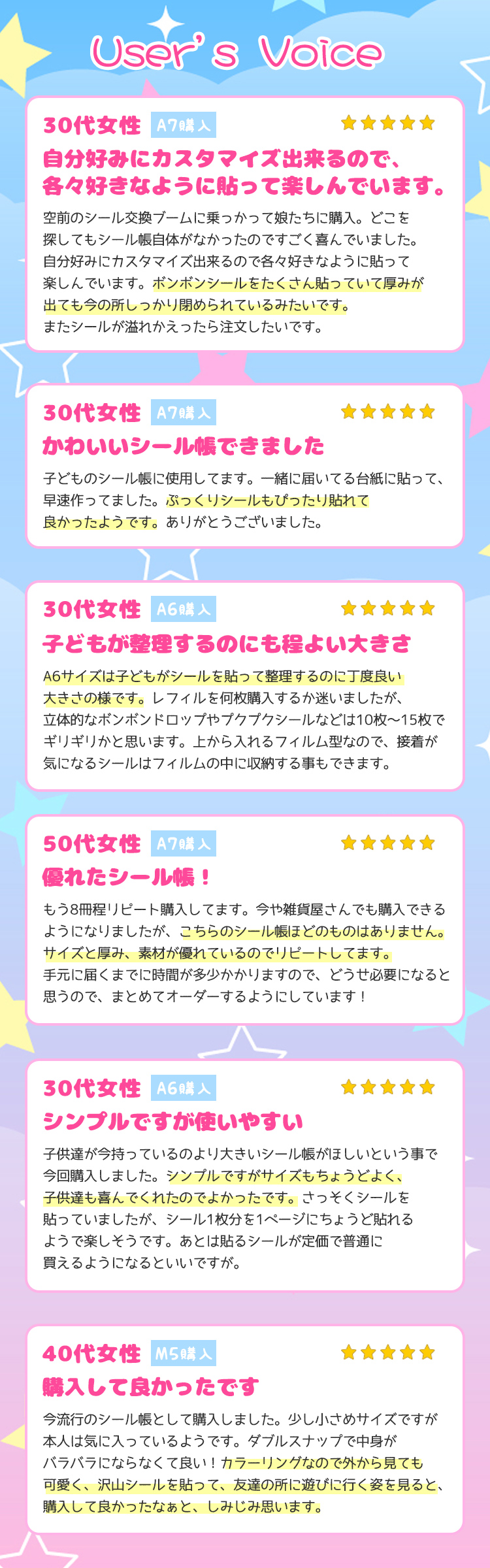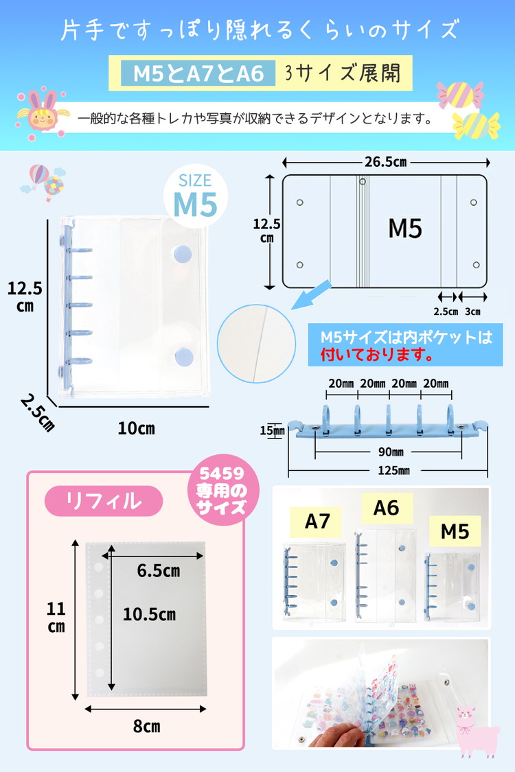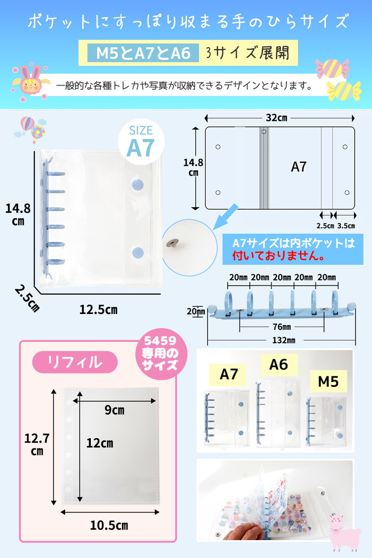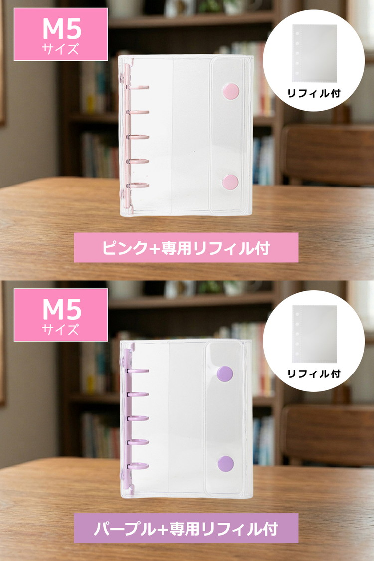 シール帳 バインダー 透明 シールバインダー 台紙 6穴 女の子 男の子 リフィル10枚付 M5 A7