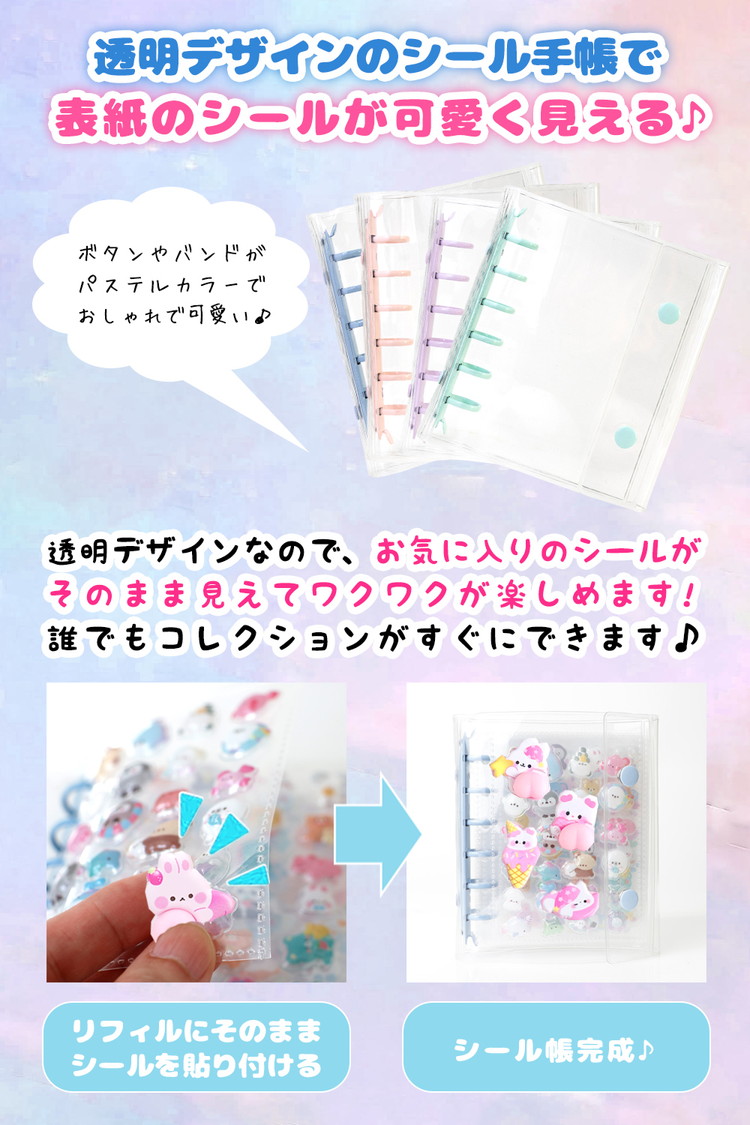 【透明カラーがおしゃれで可愛い♪ シールバインダー リフィル付】透明デザイン×パステルカラーが可愛いシールバインダーです