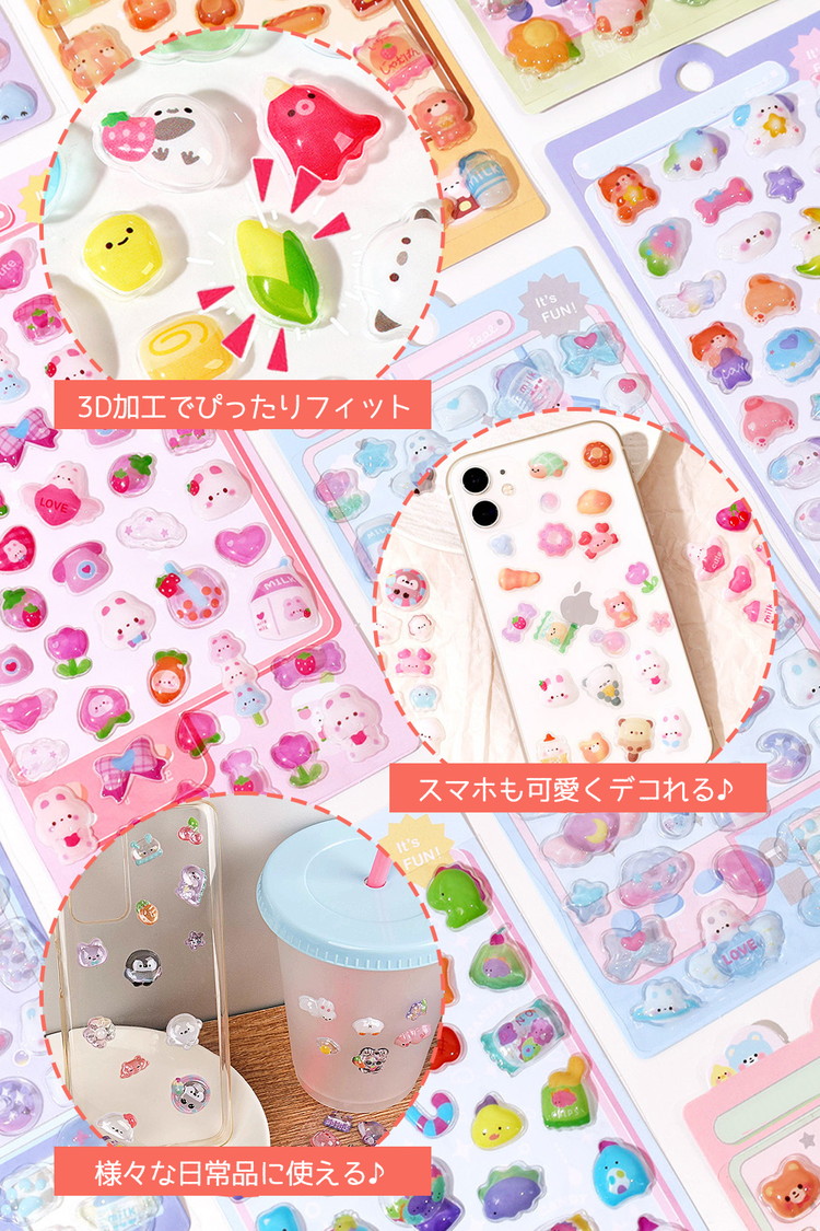 【ポイント1 ぷっくりで可愛い】3Dデザインが立体感があって可愛いシールです
