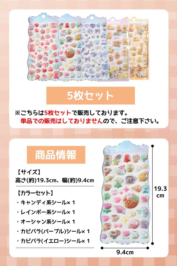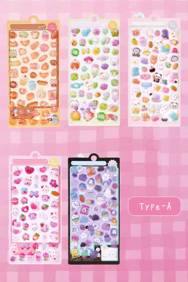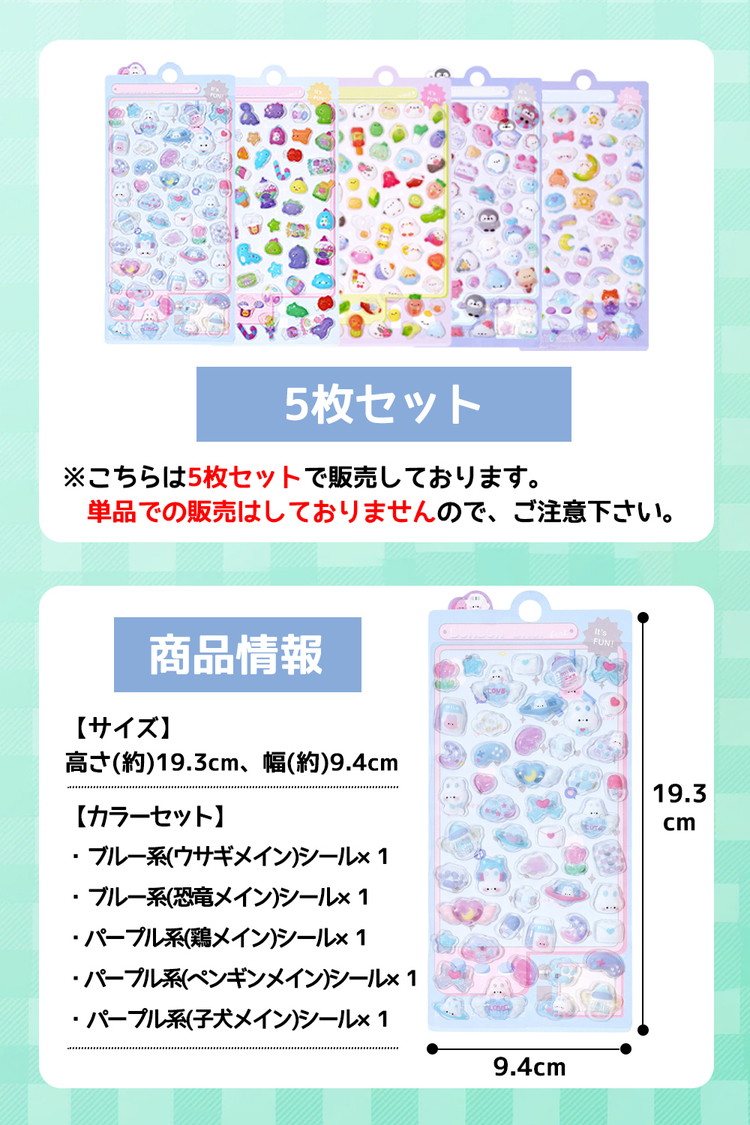 ドロップシール ぷくぷく シール 【5枚セット】 ぷくぷくシール シール帳 女の子 可愛い ぷっくり 立体 3Dシール