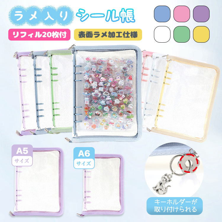 シール帳 シール バインダー A5 A6 大きいサイズ 透明 クリア ラメ入り【リフィル20枚付】 大きめ シールバインダー リフィルのみ有 はがせる レフィル シール手帳 台紙 6穴 女の子 男の子 大人 クリアバインダー