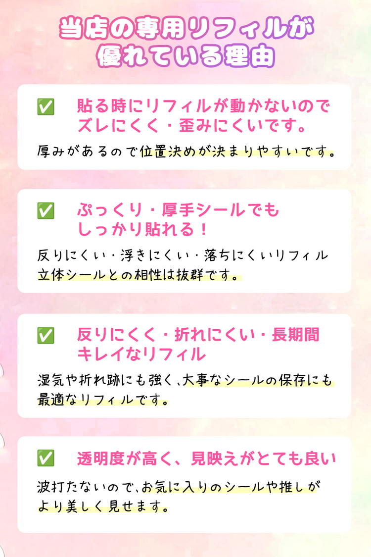 【ポイント4 透明リフィル付き】初めての方でも安心の透明リフィル付きのシール手帳です