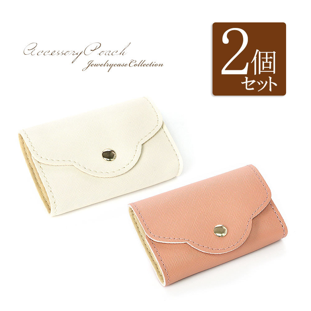 トラベルポーチ シンプル 2個セット アクセサリーポーチ ジュエリー 小物入れ 旅行 持ち運び ピンク アイボリー ピアス 指輪 ネックレス 母の日ギフト 花以外