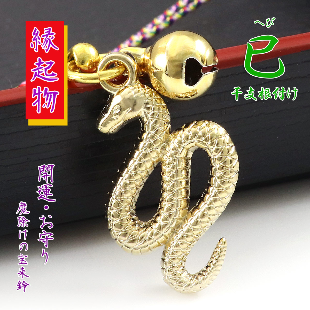 根付けストラップ 巳 ヘビ 十二支 干支 蛇 巳年 お守り 根つけ お土産 プレゼント お返し ゴールド色 鈴 五色紐 格好良い 金色 年女 年男 成人式 お祝い 成人