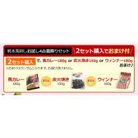 2セット購入で馬カレー180g or 炭火焼き150g or 馬肉ウィンナー5本いずれかおまけ♪ ※おまけはいずれかランダムとなります。