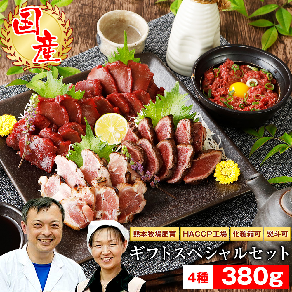 馬刺し ギフト 馬肉 熊本 国産 ギフトスペシャルセット 380g 名入れ 祝い箸 ペアセット(有料) ばさし 贈答 プレゼント お祝い