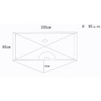 間口205cm、奥行90cm、高さ95cm、前室張出、38cm