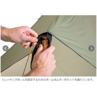 そのままソロ用のタープとして使用するだけではなく、本体の一部を巻き上げて変形させることでフロアレスのシェルターとしても使用することができます。