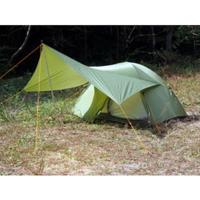 ビバークタープよりも一回り小型の「トレックタープBeyond」は、トレックライズや、エアライズの前室用として開発されましたが、ストック1本でも設営できますので、『野宿愛好家』の皆さんの屋根としても有効に利用することができます。