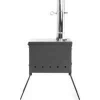 薪ストーブとして天板での調理はもちろん、天板を外すと二次燃焼構造の焚き火台としても使用でき、付属の焼き網を使えばグリル調理も楽しめる3WAYタイプ (※燃料に炭は使用できません) 。