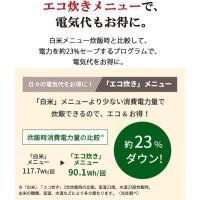 ・エコ炊き:白米メニュー炊飯時に比べて約23%電力ダウン!