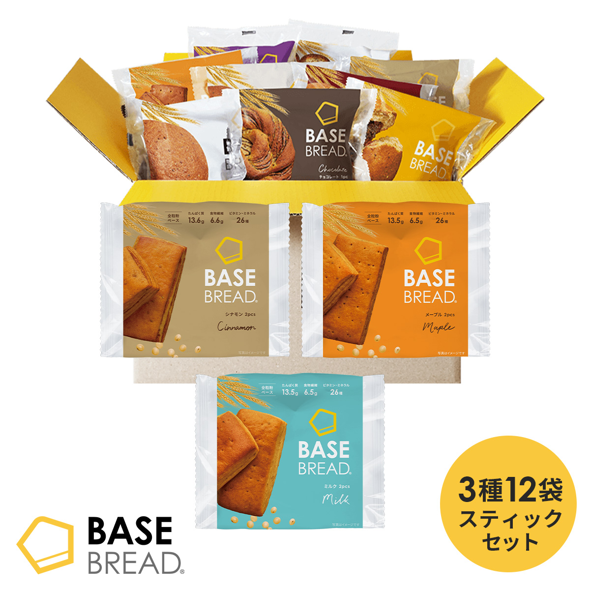 ベースブレッド 3種12袋 パン[シナモン・メープル・ミルク]置き換えダイエット ダイエット食品 完全栄養食 低糖質 BASE BREAD ベースフード BASE FOOD