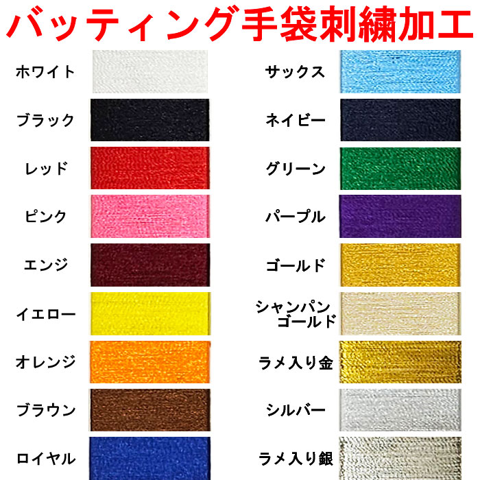 【刺繍加工】 バッティング手袋(別途購入の必要あり) 刺繍加工 番号 ネーム 単色 縁取り 影付き
