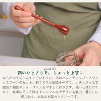 【 天然木製 & 漆塗り仕上げ 】厳選された天然木を使用し、伝統的な漆塗りを施すことで、なめらかな手触りと美しい光沢を実現。木目の風合いを楽しめるちみつディッパー&ジャムスプーンです。