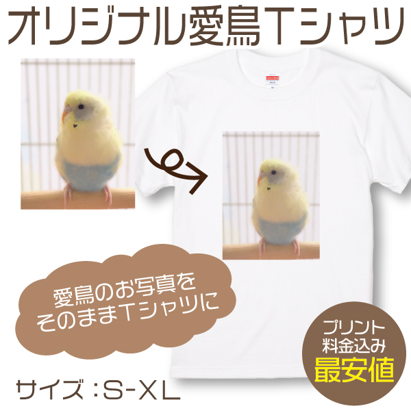ペット 鳥 インコ 文鳥 写真 グッズ オリジナル Tシャツ 愛鳥 プレゼント 1枚から 送料無料 キッズ 鳥好き メモリアル 思い出 男性 女性 綿100% 愛鳥週間 085